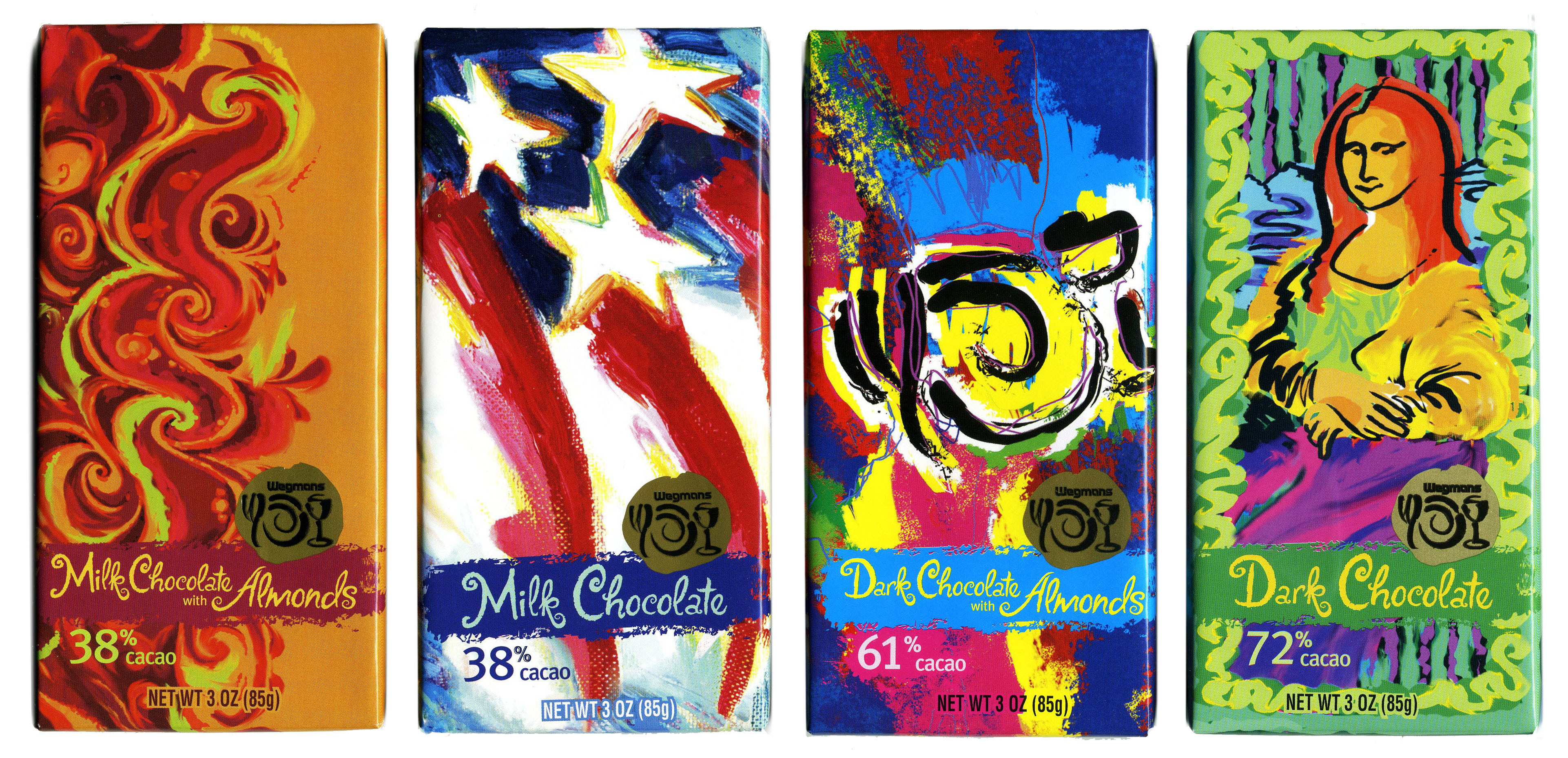 Objective: Chocolates are one of Wegmans signature products. The goal was to capture the fun, artisan side of chocolate that is uniquely Wegmans through various products including chocolate bars, assorted flavored chocolate boxed candies & hot coco.